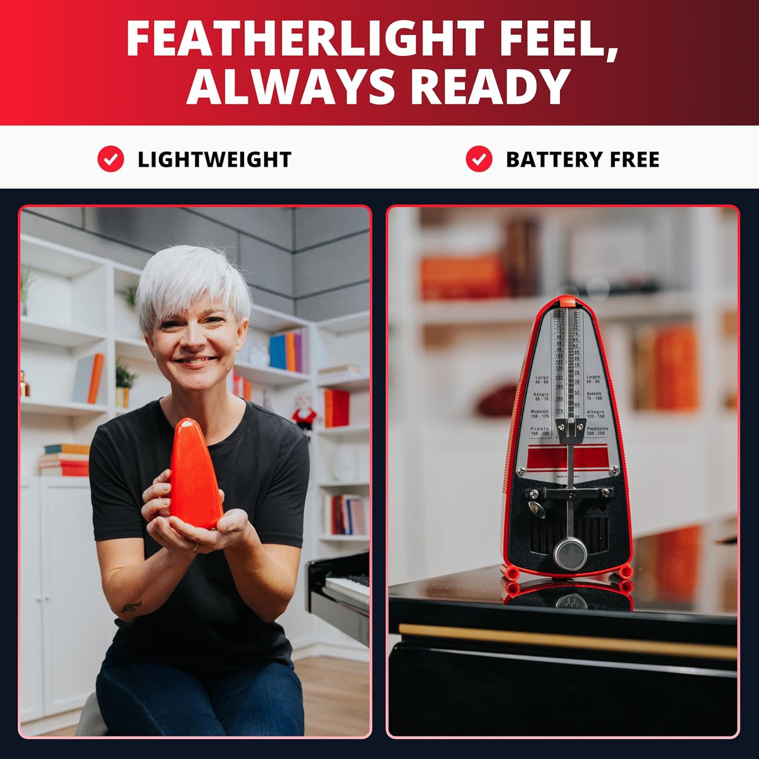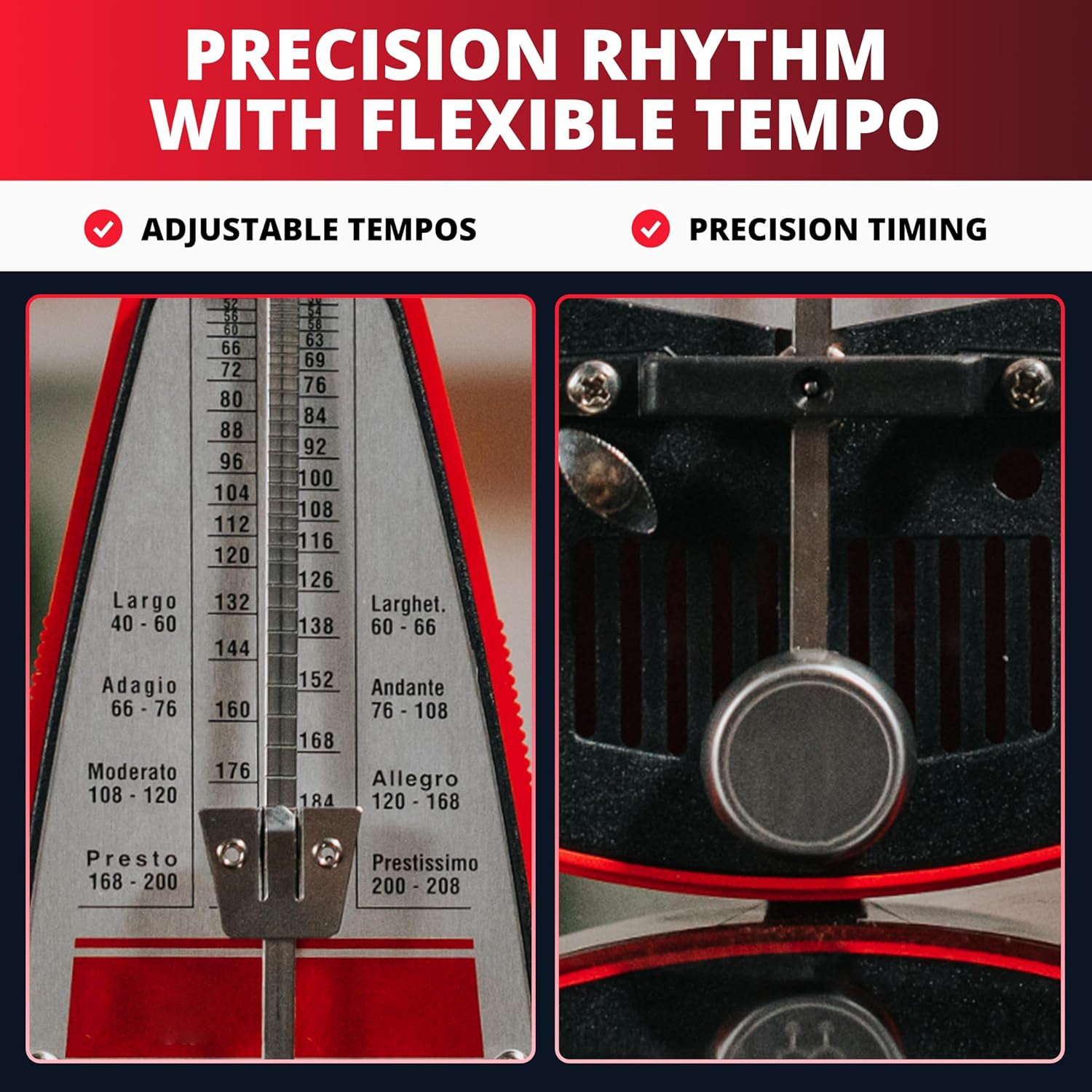Provides a clear visual beat with the swinging pendulum, allowing musicians to follow rhythm both audibly and visually.