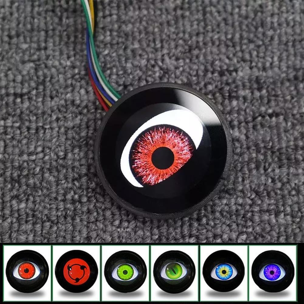 Programmable devil eyes light with remote control—18 eye animations and 9 colors, or upload custom JPG/GIF (240×240 pixels, up to 1MB).