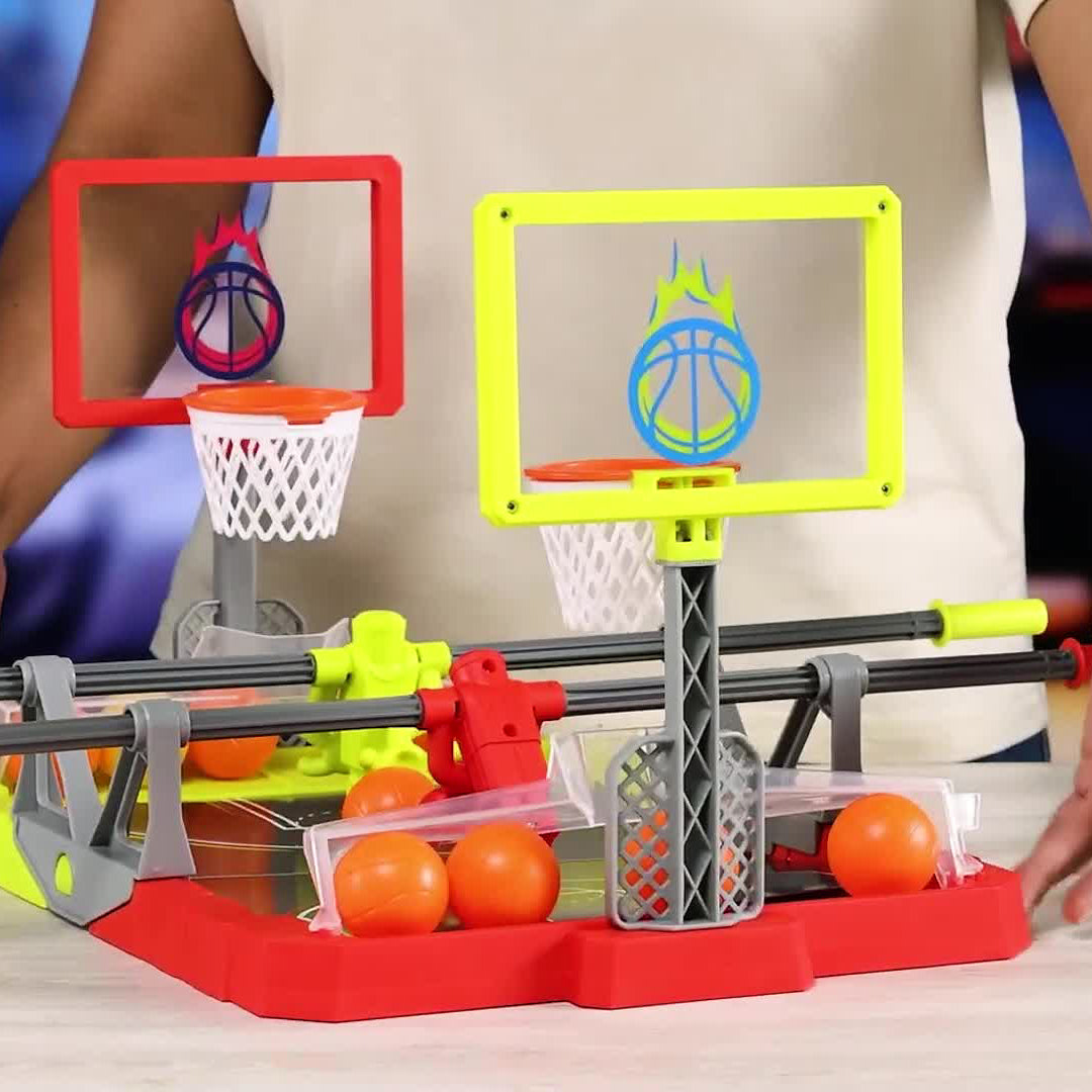 This game blends foosball and basketball, where players steal the ball, aim, and shoot it into the opponent's basket, creating an exhilarating competition.
