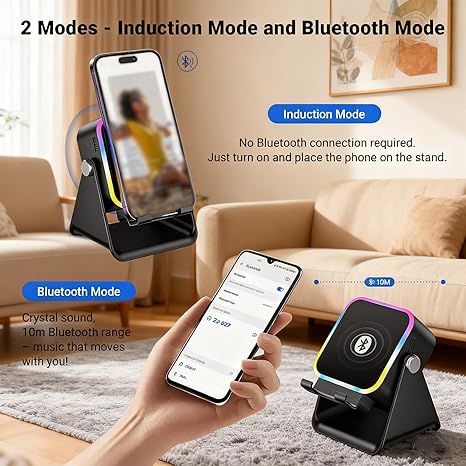 The wireless sensor audio speaker stand is a multifunctional device designed to combine audio playback, device holding, and convenient charging in one setup.