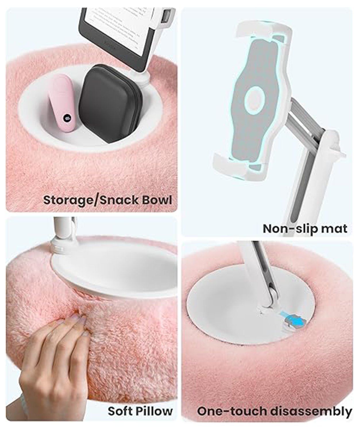 Tablet pillow stand with 360° adjustable Kindle page turner