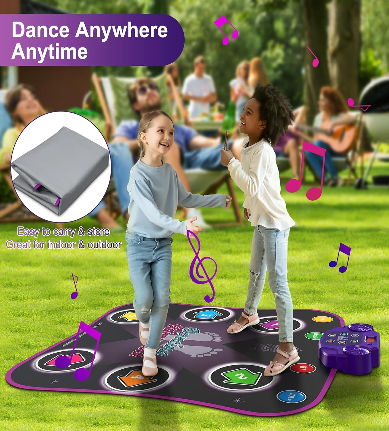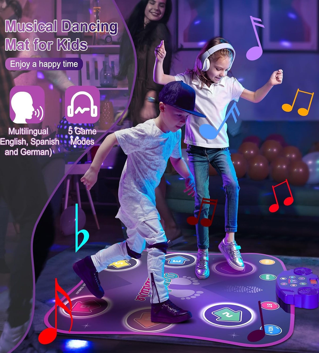 The mat features vibrant lights that illuminate with the music, adding an extra layer of excitement to dance activities.