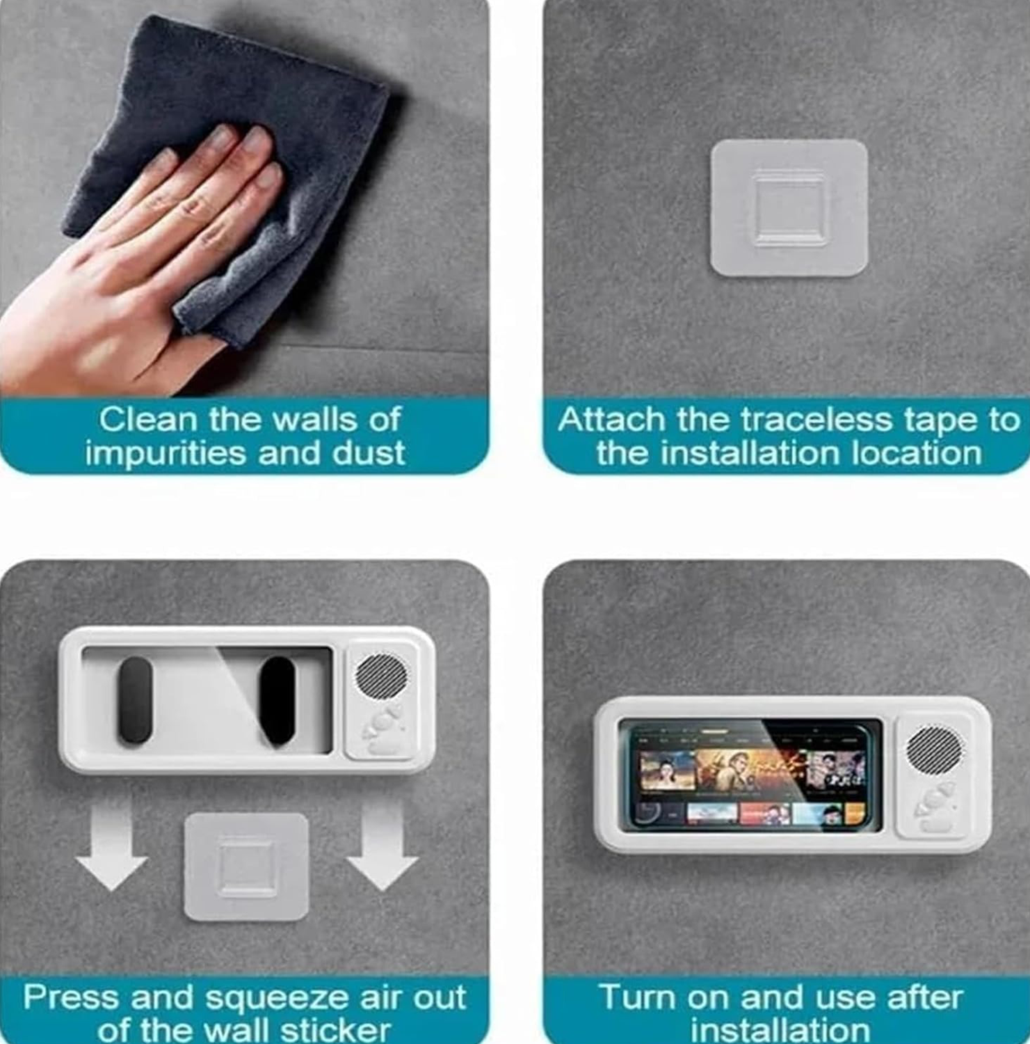 Easily mounts to tile, glass, or metal, offering flexibility to adjust your phone's angle with a 360° rotation.