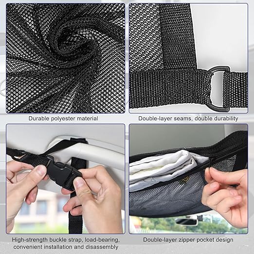 The Car Roof Mesh Bag is a versatile and robust adjustable storage solution designed to maximize your vehicle's rooftop space. Measuring 35.43 inches x 25.59 inches, this double-layer zippered mesh net securely organizes and protects gear during travel, making it the ideal companion for road trips, camping adventures, and hauling bulky items with ease and security.