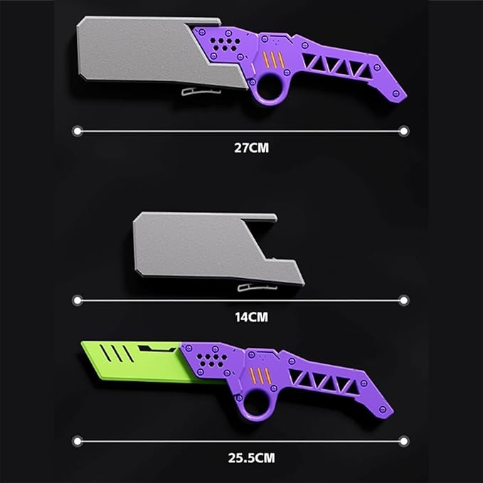 This glow-in-the-dark toy sword and 3D gravity knife is designed for fun, role-play, and stress relief. With an innovative blade design, retractable features, and a glowing phosphorescent effect, it offers hours of safe, interactive entertainment for teenagers, adults, and collectors. Perfect for tactical games, demonstrations, or simply spinning and fidgeting for stress relief.