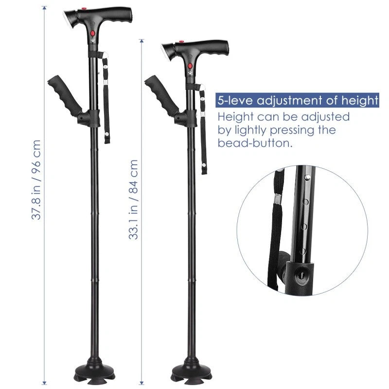 The alarm-equipped model includes a discreet, easily accessible alarm button on the handle. When pressed, it emits a loud, attention-grabbing sound to alert others in case of an emergency or fall.