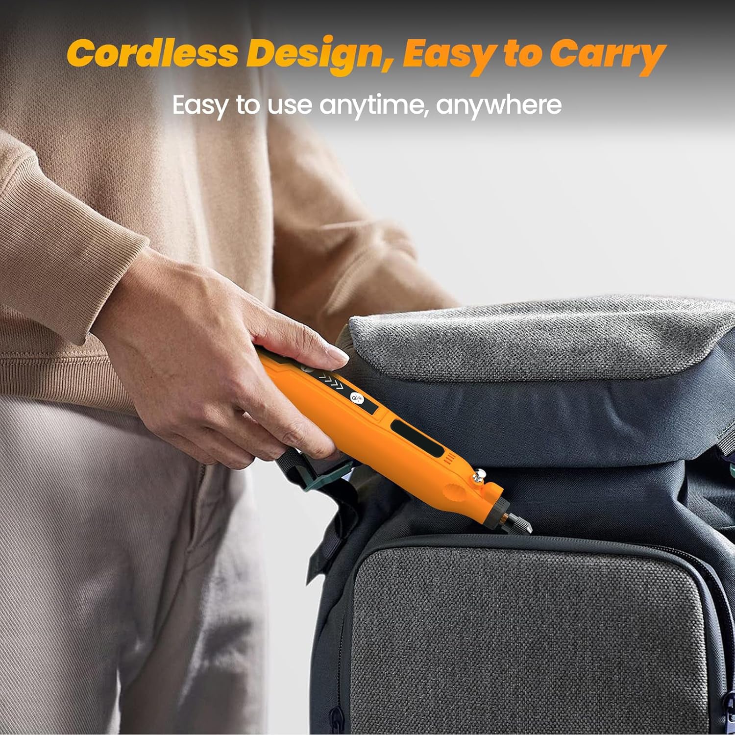 Compact 5-speed cordless rotary tool with 69 accessories—perfect for detailed DIY work including engraving, sanding, grinding, polishing, and drilling.