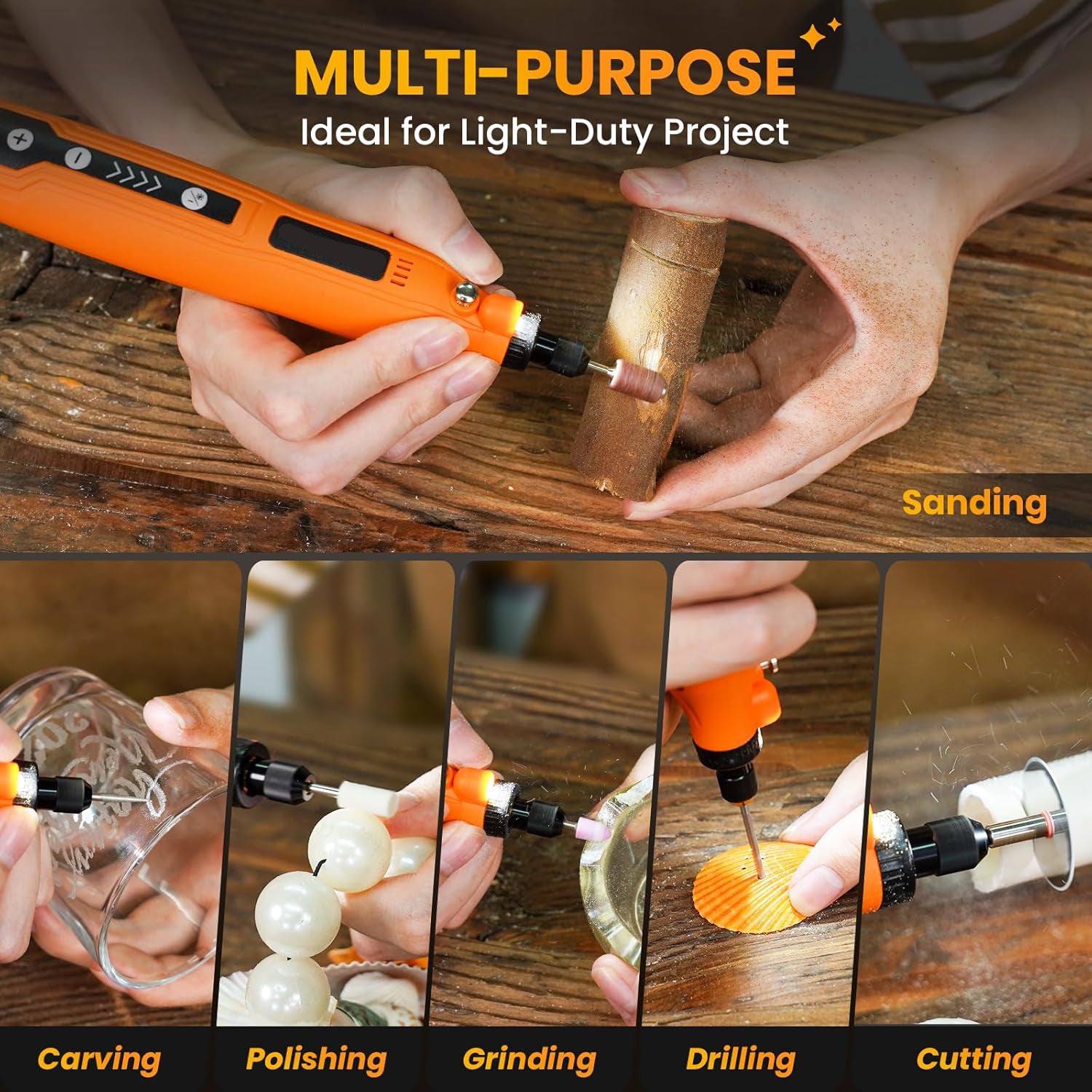 - Applications: Sanding, Polishing, Drilling, Etching, Engraving, Grinding, Cutting, DIY Crafts