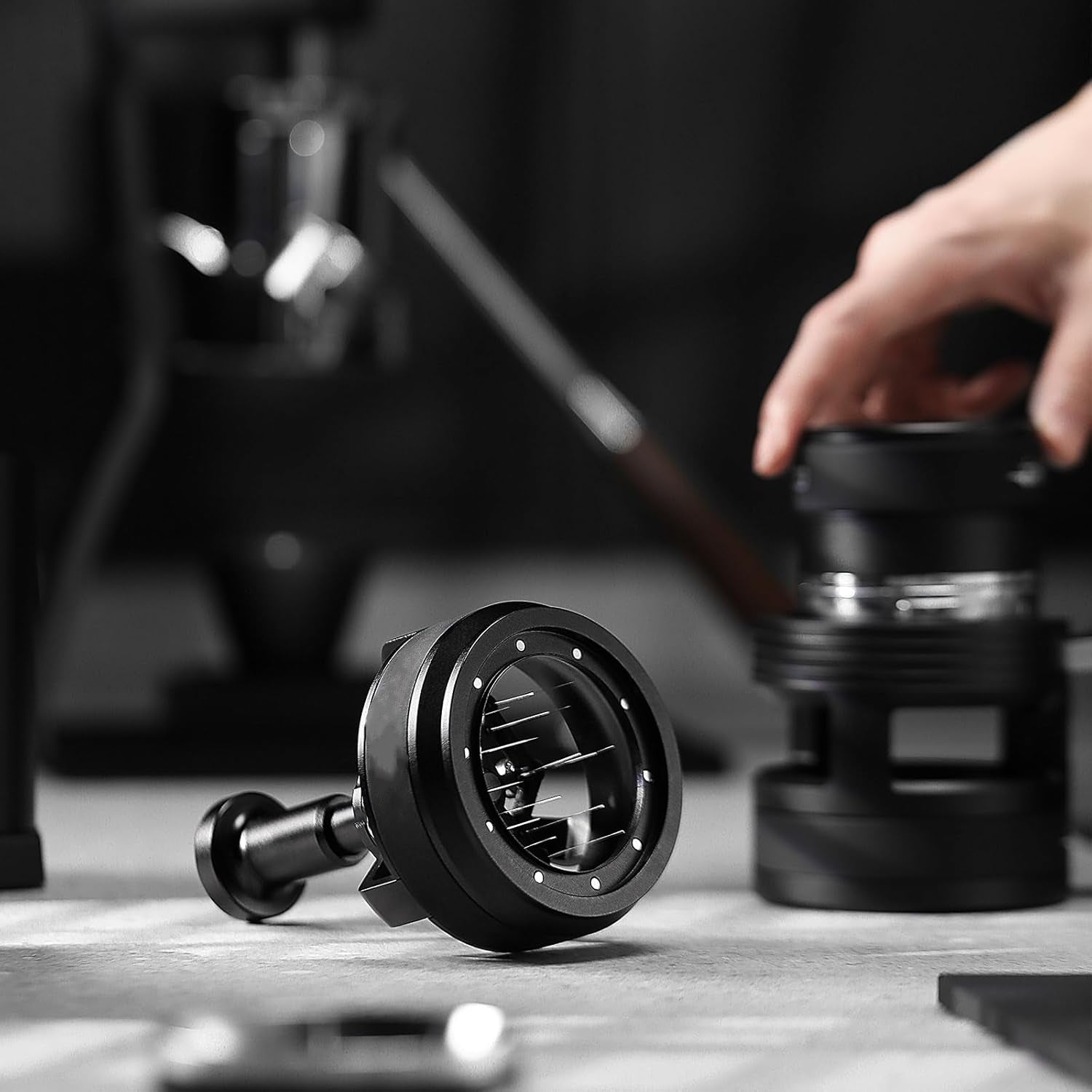 • Use: Espresso puck preparation, clump breaking, even extraction