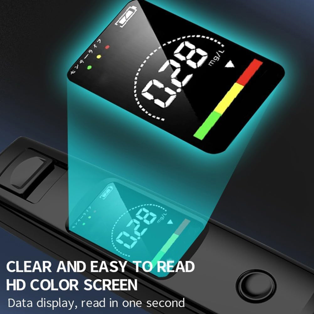This portable alcohol tester uses advanced technology to provide high-precision alcohol detection. Perfect for personal and home use, it allows you to easily measure your blood alcohol content, helping you make responsible decisions before driving or other important activities. It features a clear LCD display, a three-color indicator light system, and an audible intoxication alarm, ensuring that you can quickly understand the test results.