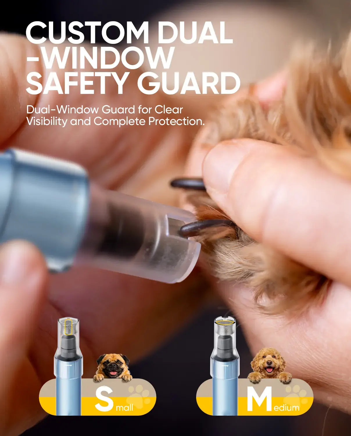 A quiet rechargeable nail grinder with LED light and 5 speeds — dual-window safety guard prevents over-grinding and skin contact.